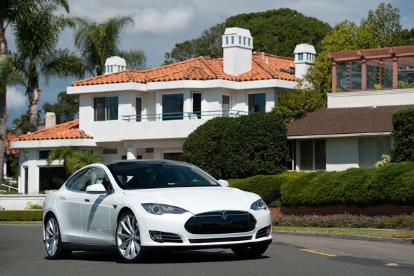 Үйлер арасында жолдағы ақ көлік