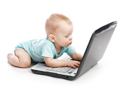 Бала ең жаңа ноутбукты қарастырады