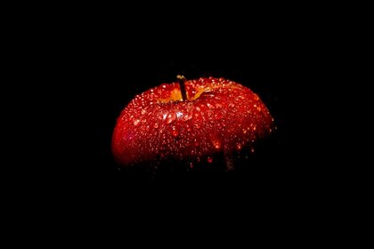 Қараңғы фон. Қызыл бұқа. Алмаға тамшылар
