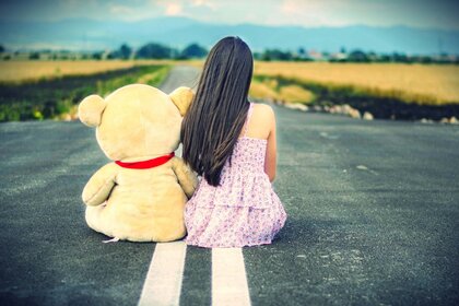 Екі жолақты жолдағы қыз бен аю