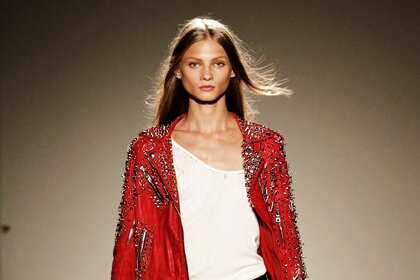 Былғары көйлек киген Модель