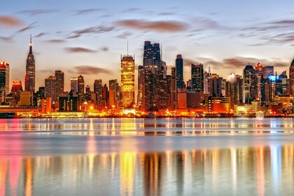Күннің батуындағы зәулім ғимараттардың шамдары