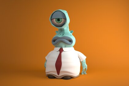 Қызғылт сары фонда бір көзді пластилин құбыжығы