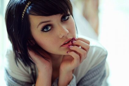 Пирсингпен көгілдір көзді брюнетканың портреті