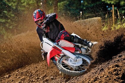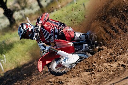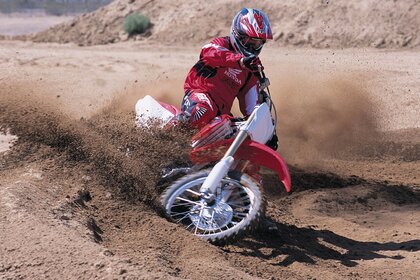 Шабандозы бар сары мотоцикл слайдтарға шығады