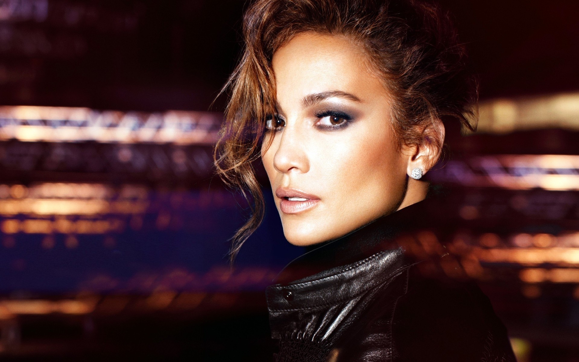 Дженнифер Лопес бұлыңғыр түсті фонда