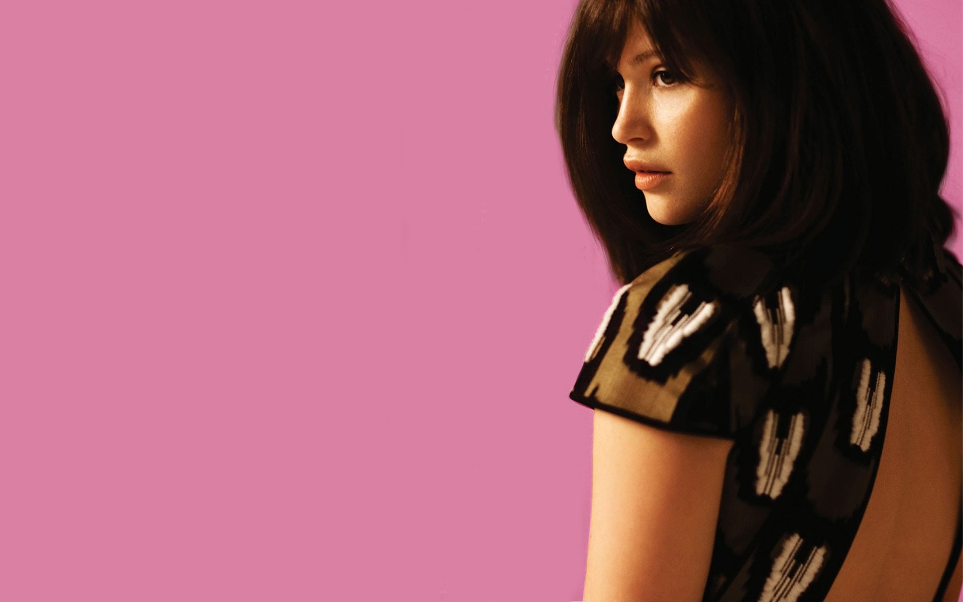 Қызғылт фонда жеңіл көйлек киген қыз