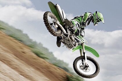 Мотоцикл жүргізушісі жоғары жылдамдықпен жүреді