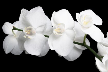 Қара фонда ақ орхидея гүлдері