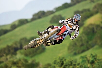 Жарыста велосипедші, төбеден түсу