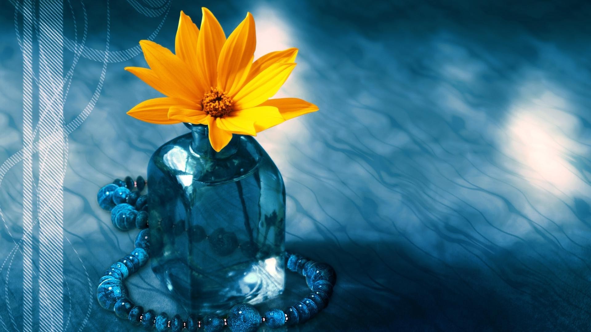Су вазасындағы қызғылт сары гүл - жұмыс үстелінің тұсқағазы