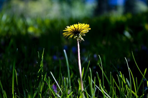 Жасыл шөптегі бір сары одуванчика