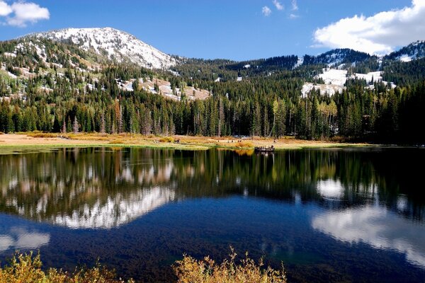 Көк көл. көптеген ағаштар