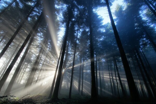 Күн сәулелері орманды тесіп өтеді