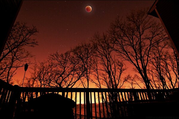 Күн батқан және қызыл аймен табиғат көрінісі