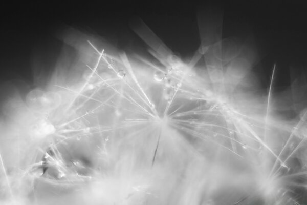 Макро су тамшылары бар одуванчика