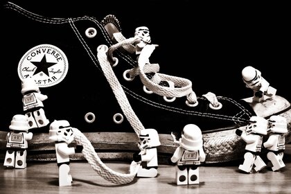 Лего адамдары кроссовкаларды бөлшектеуге тырысады