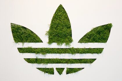 Фирманың логотипі Адидас көк фонда