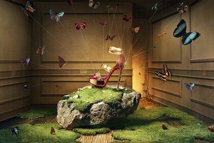 Көбелектермен қоршалған Кутюр аяқ киімі