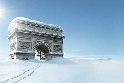 Үлпілдек қар көрпемен оралған тас антикварлық арка