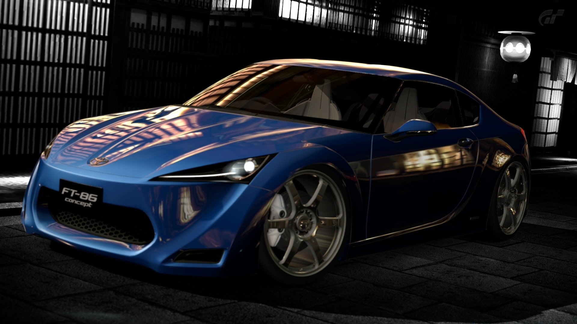 Ангардағы көк жарыс машинасы