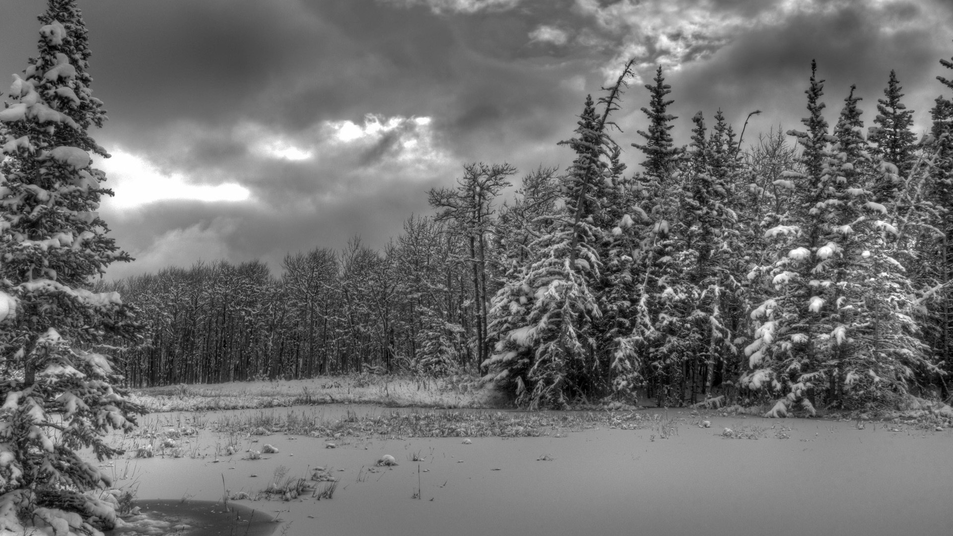 Қара және ақ қысқы орман пейзажы - телефондағы тұсқағаз
