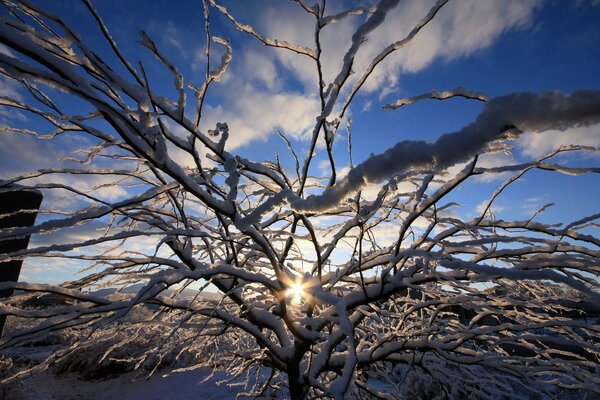 Таңертең ағаштардың табиғи қысқы пейзажы